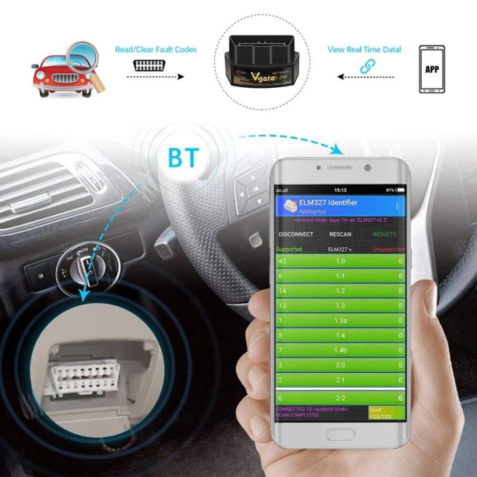 Vgate Icar 2 ELM327 Bluetooth OBD2 autodijagnostika V2.2 (iCar2) ili 2.3 (Vgate Pro)