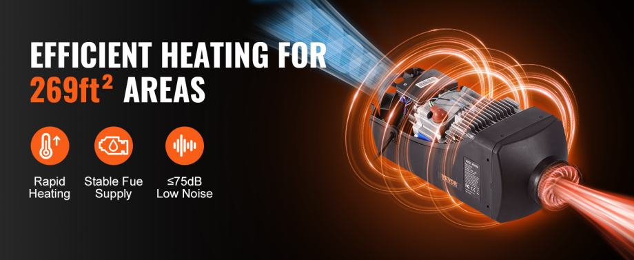 Niska potrošnja energije i visoka snaga: Uštedite na troškovima goriva s preciznom pumpom za gorivo s niskom razinom buke naše dizelske grijalice, koja troši samo 4 litre po noći i smanjuje potrošnju goriva na raspon od 0,16-0,62 L/h. Sa spremnikom goriva velikog kapaciteta od 10 L/2.6 gal, dizelski grijač zraka može osigurati kontinuiranu toplinu do 16 sati, maksimizirajući učinkovitost goriva i minimizirajući rasipanje energije.