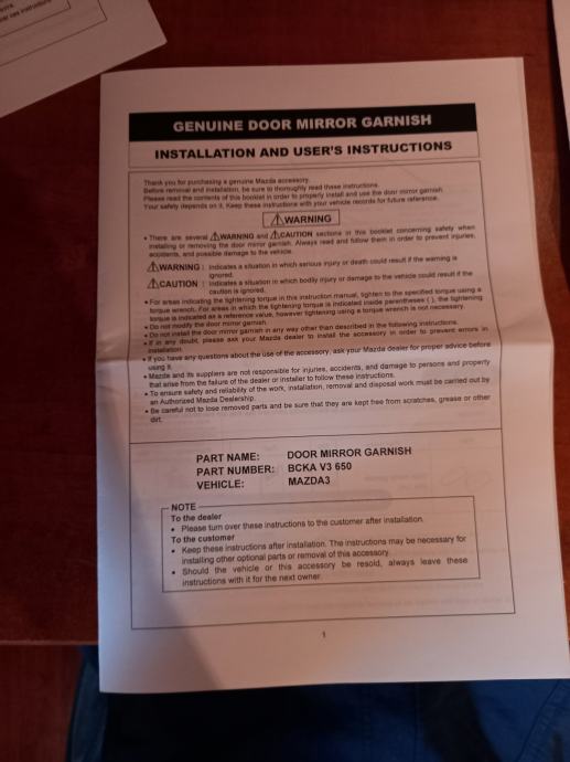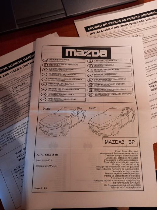 Prodajem nove original poklopce retrovizora za Mazdu 3, 2019.