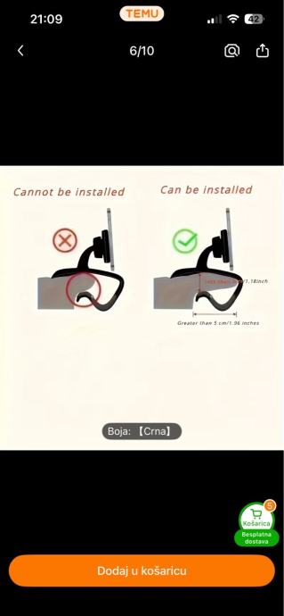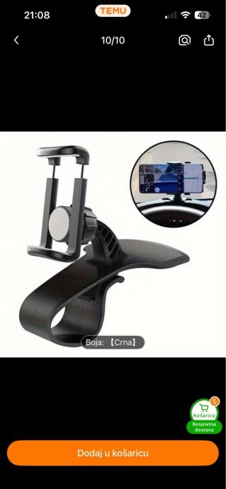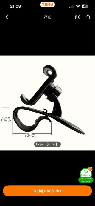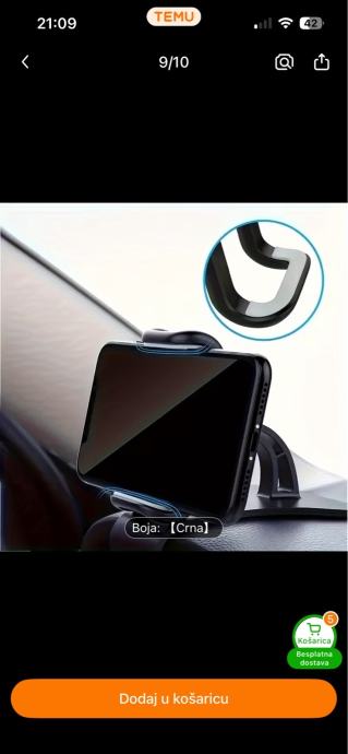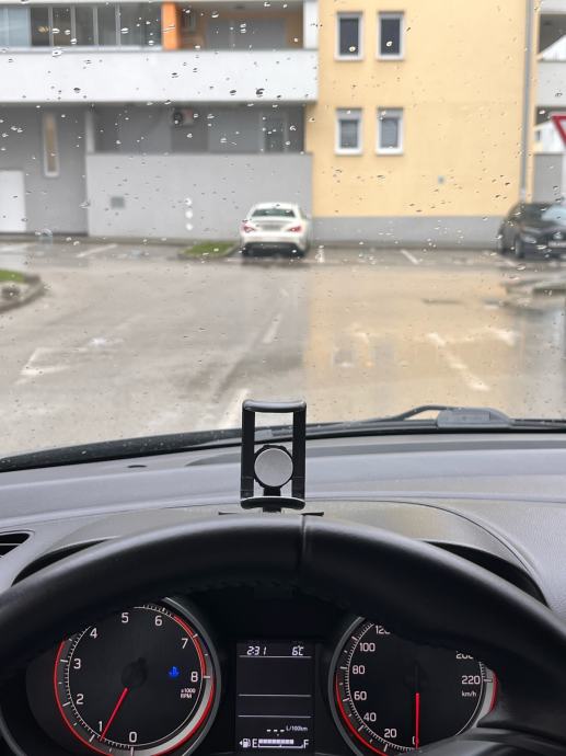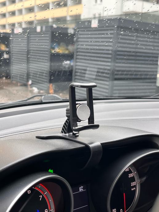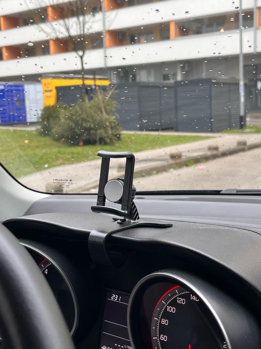 Nekorišten držač mobitela za auto - odličan jer se montira izravno ispred vozača, pruža sigurnost zbog držanja glave u smjeru ceste. Super stvar za navigaciju i razgovore.