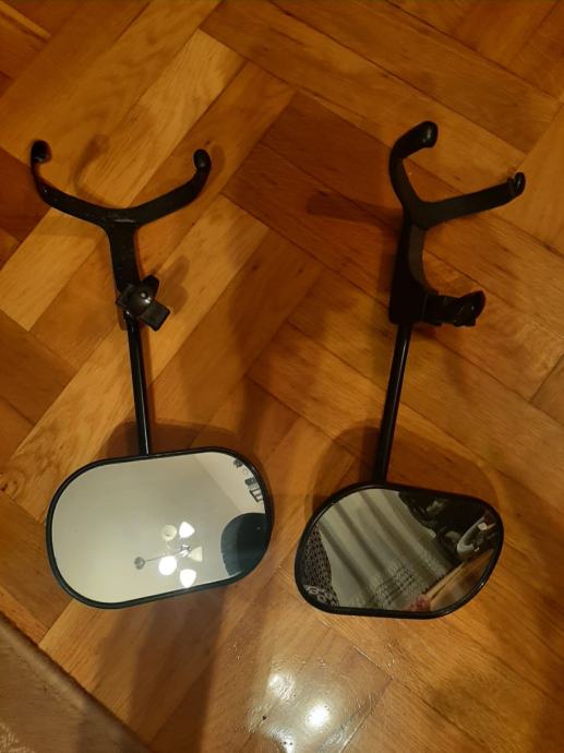 Prodajem dva retrovizora za motore ili skutere koji se mehanički pričvste i namjeste. Mogu služiti i kao dodatni retrovizori na već postojeće retrovizore koji služe za prijevoz kamp kućica i drugih prikolica i tereta.