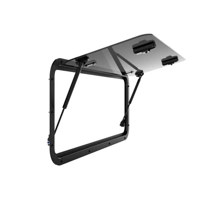 Dvižno okno Gullwing Front Runner za Defender nadomesti zadnje okno Defenderja in omogoča, da okno nagnete navzgor, kar omogoča 100 % enostaven dostop do vsebine v vašem tovornem prostoru.