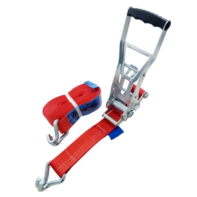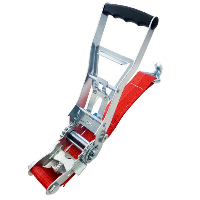 Ergonomske gurtne nova su metoda za učvršćivanje tereta. Umjesto da gurate ručku s čegrtaljkom prema gore kako biste zategnuli remen, umjesto toga povucite ručku prema dolje, što je mnogo praktičnije i lakše. Nazivna čvrstoća od 5000 kg s minimalnom prekidnom deformacijom od 2500 DAN.