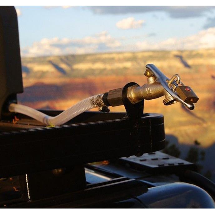 Front Runner pipa za rezervoar je narejena tako, da jo je mogoče zakleniti, s čimer lahko preprečite krajo vode iz vašega rezervoarja. Uporaba je mogoča s cevjo Front Runner Premium Water Tank Hose Kit.