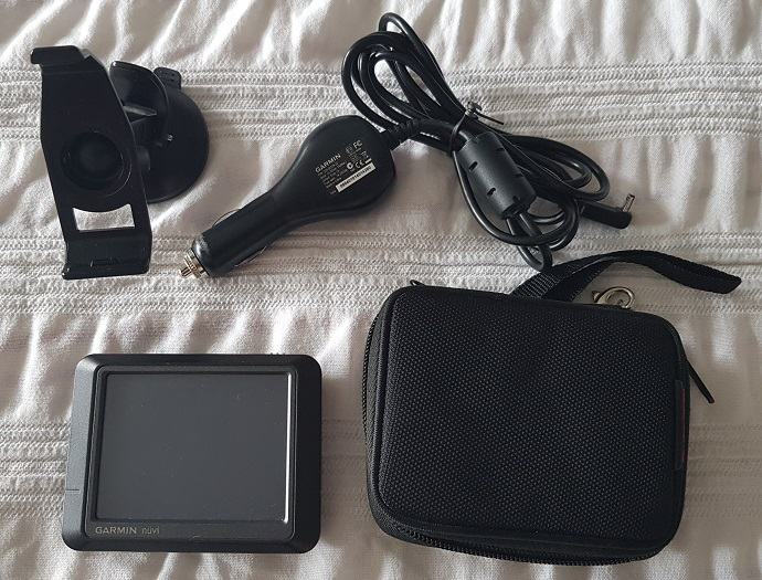 Garmin auto navigacija, auto nosač, kabel za punjenje u autu, torbica i microSD kartica 8GB.