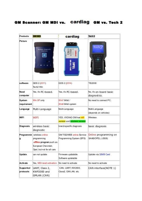 Cardiag GM KIT je jedini alat za dijagnostiku i reprogramiranje punog spektra, koji može servisirati nova vozila Delta i Epsilon (s pomoćnim CAN sabirnicom koje Tech2 ne može servisirati). Neka vozila ove godine će se oslanjati isključivo na ovaj alat za servis.