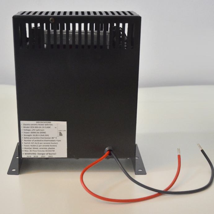 Grijalica se sastoji od 4 keramička grijača po 24V 200W (ukupne snage 800W)