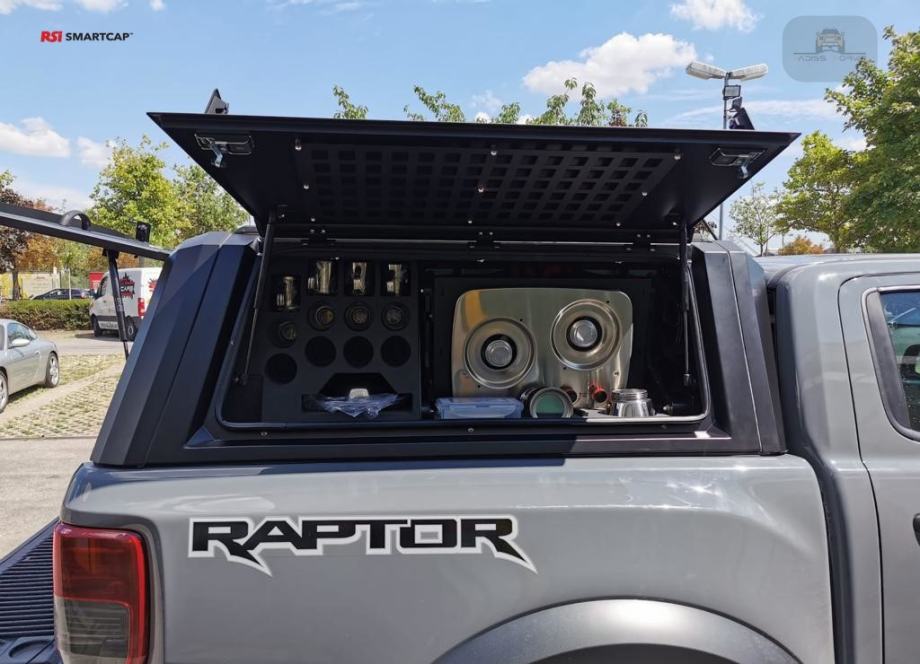 SmartCap nadstrešnica je prvi modularni sustavi od pet dijela. Napravljen je od nehrđajućeg čelika (kovani, neprskani) do besprijekorno ugrađenih komponenti. Organizirajte svoj sanduk vozila točno onako kako želite. Pridržava 150 kg opreme u vožnji i ogromnih 350 kg u stajanju.