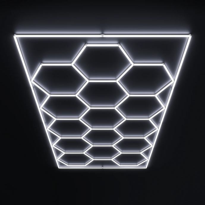 Hexagon rasvjeta, koja je postala popularna u automobilskoj i detailing industriji, savršen je izbor ako tražite luksuzno i moderno rasvjetno rješenje koje istovremeno pruža izuzetno svijetlo a pritom je i dizajnerski detalj koji će totalno izmjeniti vizuru i doživljaj prostora!