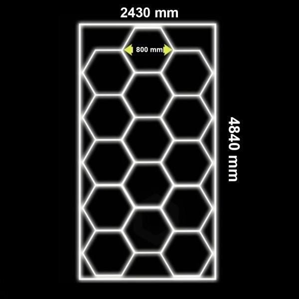 Naš najpopularniji i najsvestraniji heksagonalni rasvjetni komplet, viđenen na Facebooku, YouTubeu, Instagramu i TikToku. Dimenzija 4,85x2,44 m sastoji se od 15 svijetlih LED heksagonalnih oblika i pravokutnog okvira. Lako se sastavlja te se može objesiti ili montirati na strop ili zid kako bi odgovarao bilo kojoj garaži, uredu, studiju ili na primjer teretani. Mogućnosti primjene su zaista beskonačne.