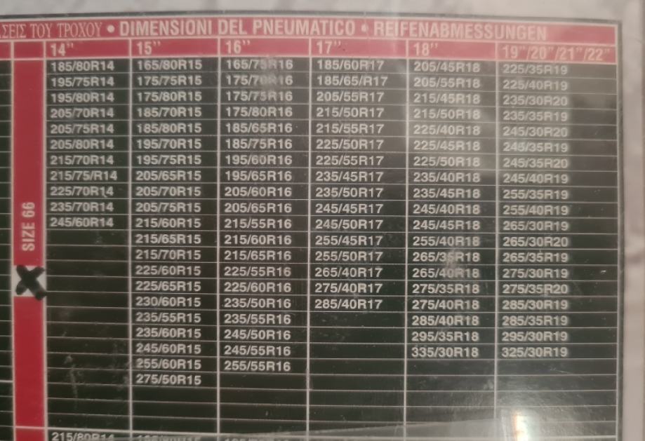 Na slici je vidljivo na koje dimenzije guma ih se može montirati.