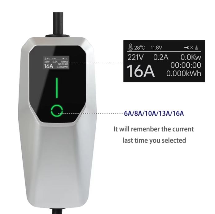- Promjena struje punjenja: 6A/ 8A/10A/13A/16A/20A/24A/32A (podesivo)