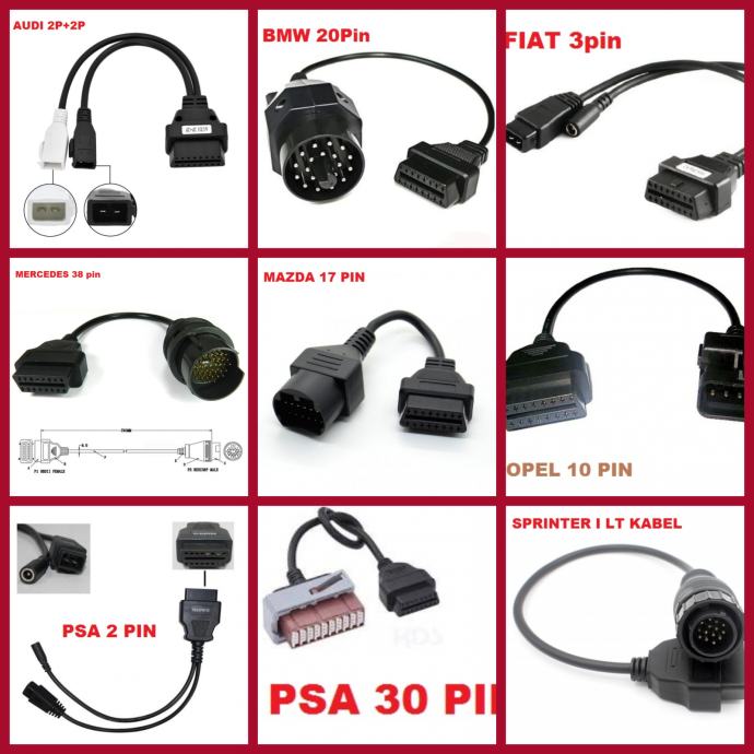 NOVI set adaptera za dijagnostičke uređaje. Kompatibilni su sa svim dijagnostikama: Delphi, Wurth. Autocom, TCS, CDP, VAG, INPA, LEXIA 3, CAN CLIP, MPPS, Launch, Ktag, Kess, MB Starr, opcom, elm327 i puno drugih dijagnostika