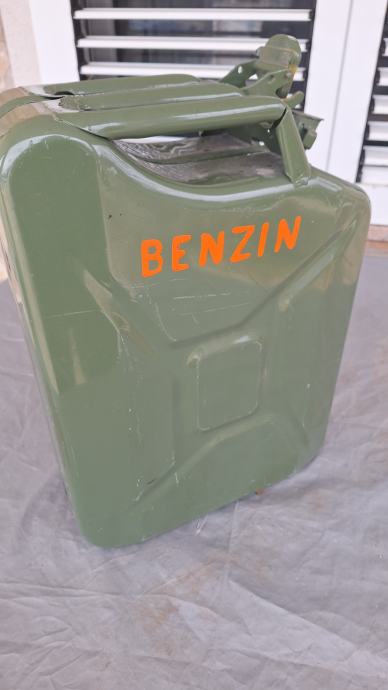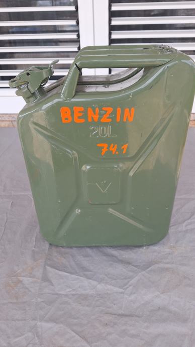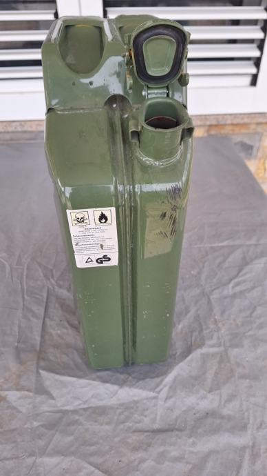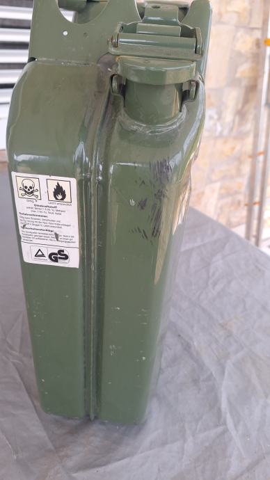 Kanistar za benzin izrađen je od metala Odobren je prema europskim smjernicama i u skladu s sigurnosnim zahtjevima. U usporedbi s plastičnim kanistrima, kanistar se odlikuje većom robusnošću i duljim vijekom trajanja, ali mu je veća i težina Kanister nije nov ali je u jako dobrom stanju