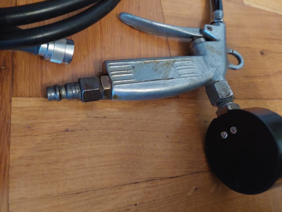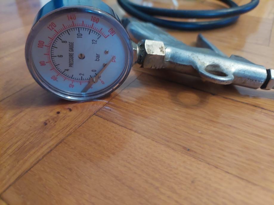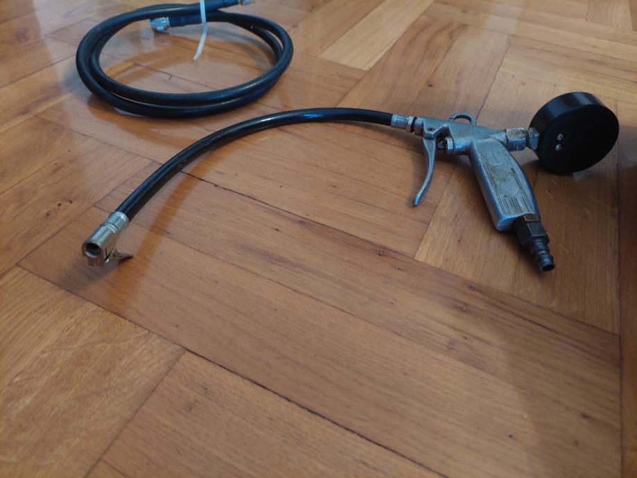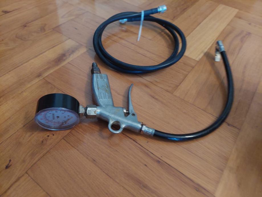 Prodajem kompresijsku pumpu za gume s tlakomjerom (bez kompresora - nastavak koji se ugrađuje u kompresor). Uz to dobijete i crijevo sa slike - novo.