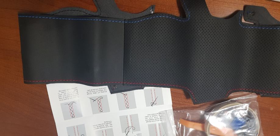 Original kožna crna presvlaka za ručno ušivanje na volan, sa svim priborom, i redoslijedom onlaganja i ušivanja volana.Novo, u original ambalaži.Isporuka odmah