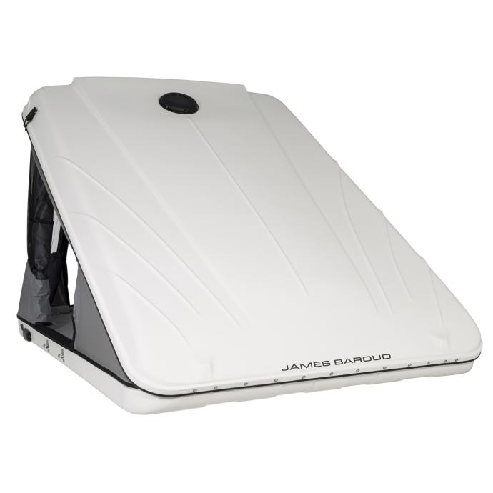 Strešni šotori James Baroud so izredno kakovostni in robustni ter primerni za vse popotnike. Ogrodje je sestavljeno iz lahkega aluminija in poliestra. Stranice so izdelane iz platna vrhunske kakovosti, ki je močno, vzdržljivo in lahko. Zaradi teh lastnosti je strešni šotor zračen ter odporen na vremenske vplive. Odlikuje ga posebna pritrditev platna na streho in dno s posebnim profilom s tirnicami, kar preprečuje vstop deževnice v šotor, hkrati pa omogoča enostavno zamenjavo poškodovanega platna. Vse zadrge so vodotesne, šivi so dvojni in prav tako vodotesni. Šotor je zasnovan tako, da zdrži veter do hitrosti 120 km/h. Vsa vrata šotora so dvojna (platno + mreža proti komarjem), odprta se zložijo kot rolo, zaprta pa se spodaj pričvrstijo z ježkom.