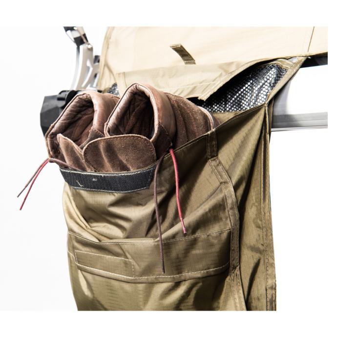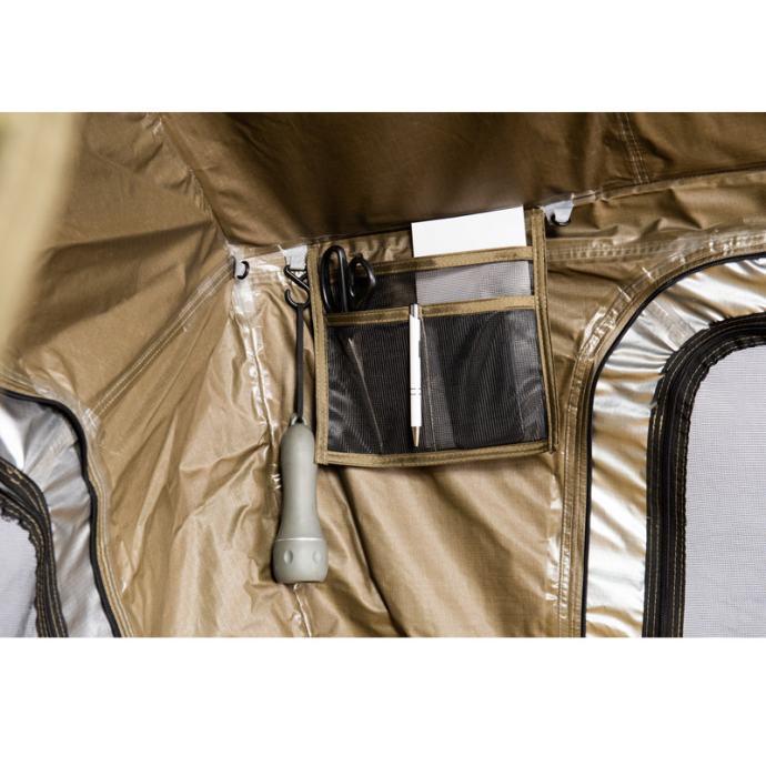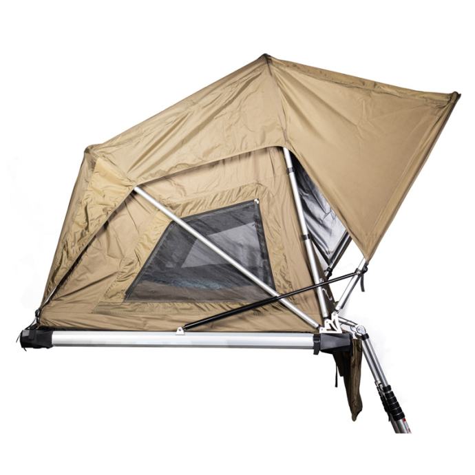 Visokokakovostni strešni šotor Jimba Jimba je izdelan iz lahkega aluminija in se prilega skoraj vsem avtomobilom. Na voljo je v dveh velikostih ter dveh barvah. Odlikuje ga patentirana konstrukcija šotora, ki je izredno močna in stabilna. Vsa okna so opremljena z zaščitno mrežo proti komarjem. Material je izredno kakovosten, vodoodporen ter ščiti pred UV žarki. Velika prednost je zasnova, ki omogoča kroženje zraka ter preprečuje kondenzacijo. V notranjosti je vzmetnica s snemljivo prevleko, ki vam bo zagotovila večje udobje. Strešni šotor Jimba Jimba je preizkušen v vseh okoliščinah, zato boste lahko uživali v udobju in svobodi.