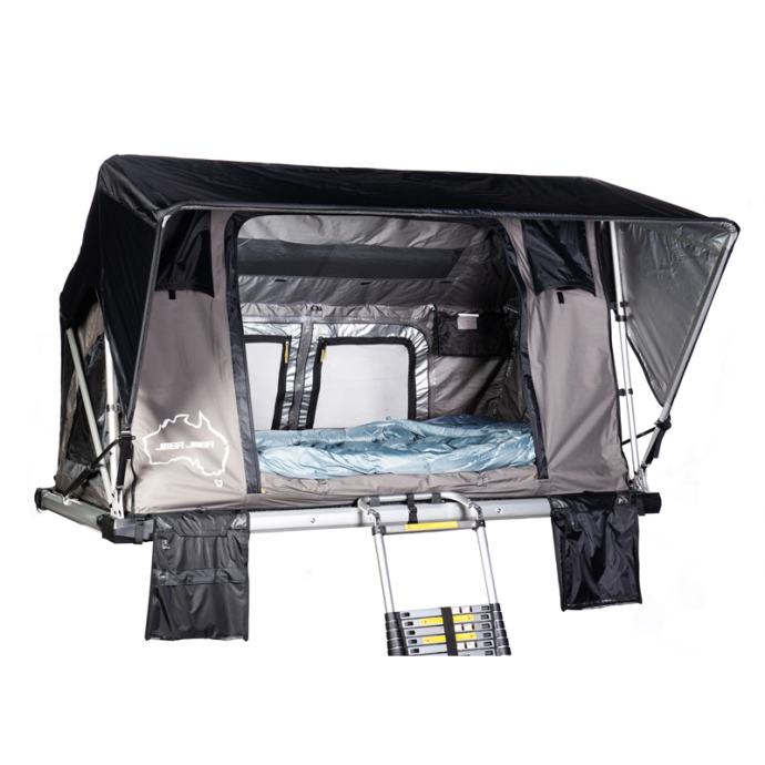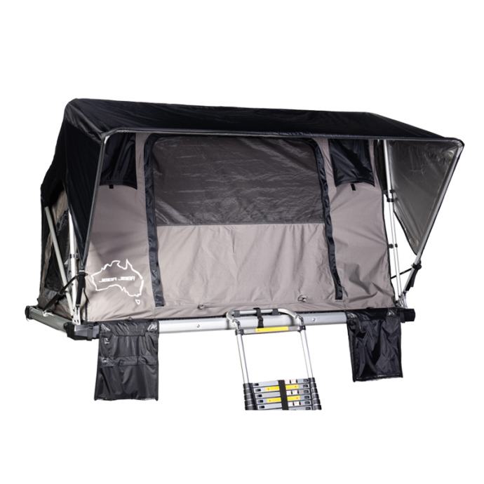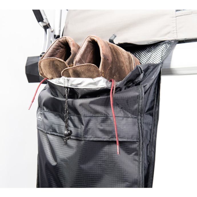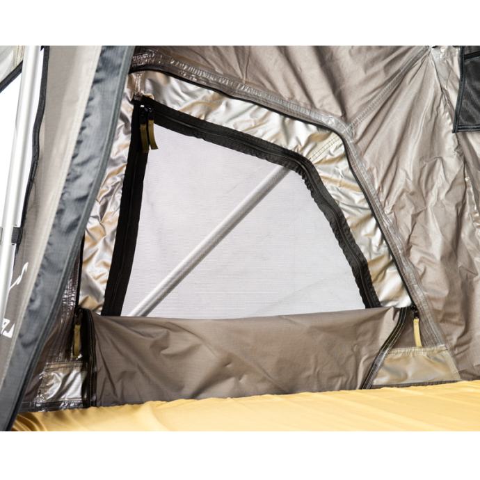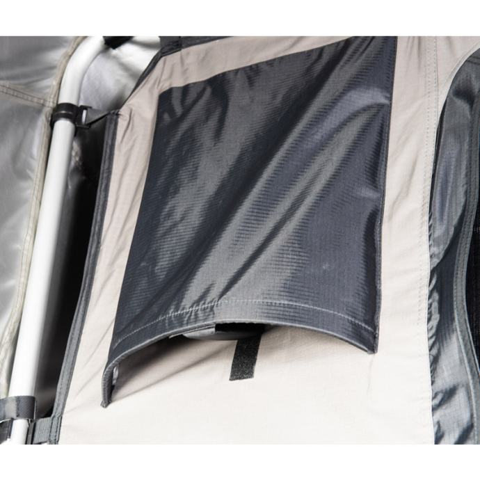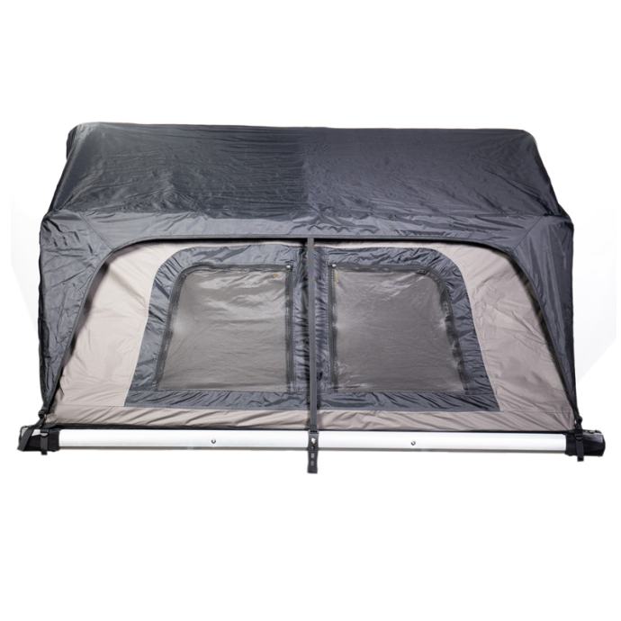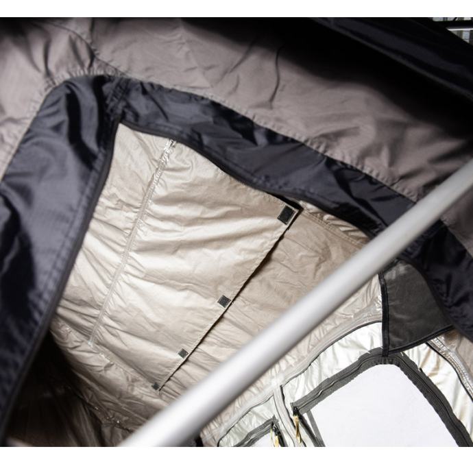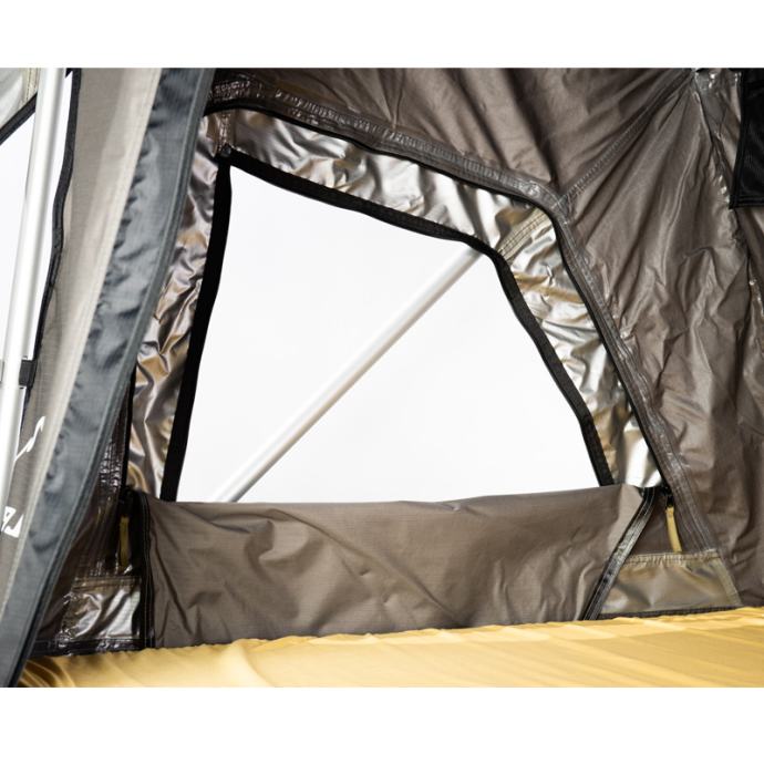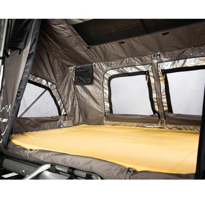 Visokokakovostni strešni šotor Jimba Jimba je izdelan iz lahkega aluminija in se prilega skoraj vsem avtomobilom. Na voljo je v dveh velikostih. Odlikuje ga patentirana konstrukcija šotora, ki je izredno močna in stabilna. Strešni šotor omogoča enostavno odpiranje in zapiranje. Vsa okna so opremljena z zaščitno mrežo proti komarjem. Material je izredno kakovosten, vodoodporen ter ščiti pred UV žarki. Velika prednost je zasnova, ki omogoča kroženje zraka ter preprečuje kondenzacijo. V notranjosti je vzmetnica s snemljivo prevleko, ki vam bo zagotovila večje udobje. Strešni šotor Jimba Jimba je preizkušen v vseh okoliščinah, zato boste lahko uživali v udobju in svobodi.