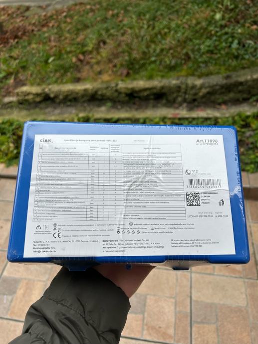 Kutija PRVA POMOĆ za automobil! NOVO! (Vrijedi do 2027.-2028.godine!) NOVO! ZAPAKIRANO! CIJENA ZA KOMAD CIJENA 11€ Upitati na 091/978-9684 (POZIV,SMS,MOŽE I UPIT INBOX) Moguća dostava Zagorje,Zagreb,Lepoglava,Ivanec,Varaždin!