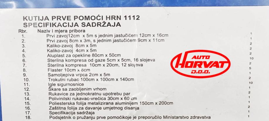 KUTIJA ZA PRVU POMOĆ - AUTOMOBILSKA PRVA POMOĆ HRN1112 ! NOVO !