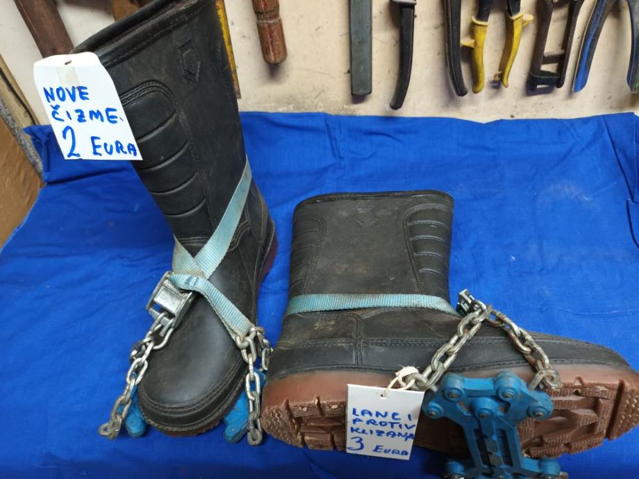 Lanci za snijeg, univerzalni, lagana i brza montaža, prodajem za 15 eura. Dizalica-podupirač 10 eura. Lanci za cipele 3 eura. Prodajem sve sa slika. Zagreb Utrina, 091/9240-293.