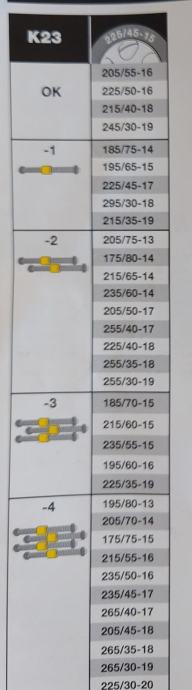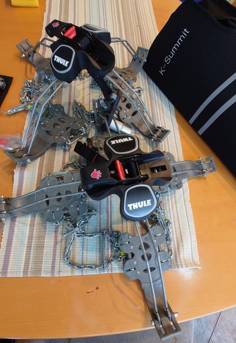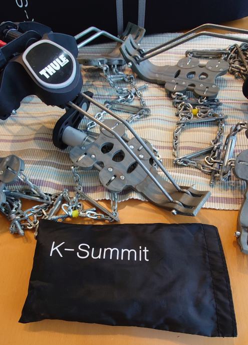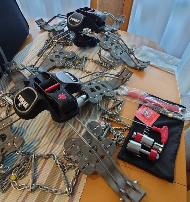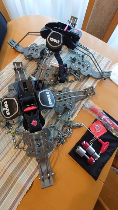 Prodajem lance za snijeg Thule/König K-Summit K23 (par),koji su za dimenzije gume 205/55 R-16,,ali odgovaraju i za neke ostale dimenzije guma uz dodatnu regulaciju,,opis iz slike u prilogu,,lanci se bocno postavljaju..namjenjeni su za jednostavno i brzo postavljanje na automobile sa aluminijskim felgama i koji nemaju puno mjesta za klasicne lance iza kotaca ..