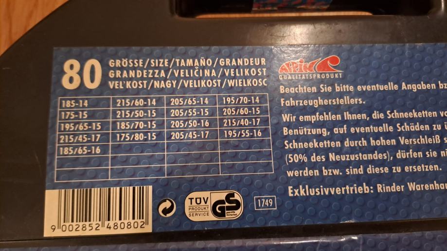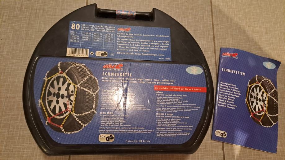 Prodajem lance za snijeg veličine 80. Dimenzije guma kojima pašu vidljive na slici. Korišteni jedanput, kao novi. Cijena 15 Eura. Zvati na 0912415557