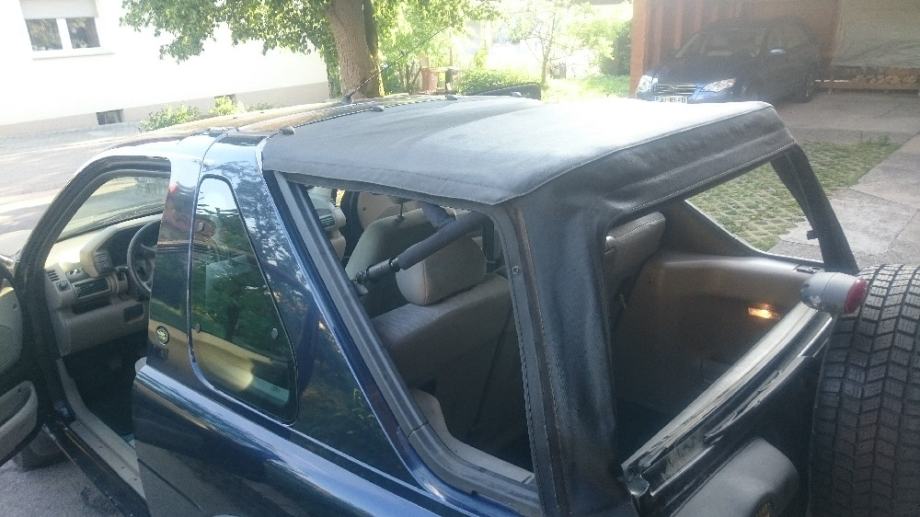 A) Soft top veliki sa stranskim prozorima u super stanju,kompletan sa kvakama i ključem, cijena 2590 kuna / 350 eura