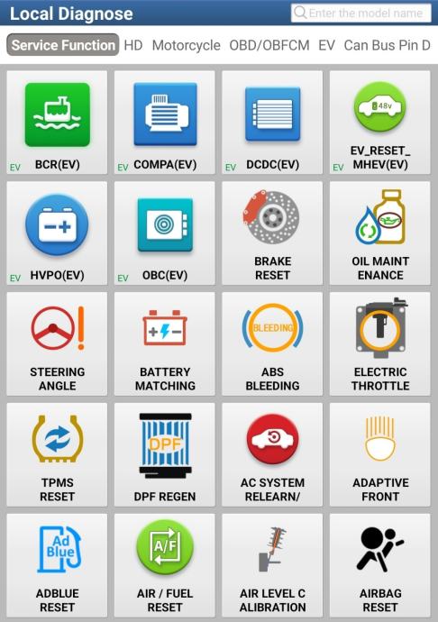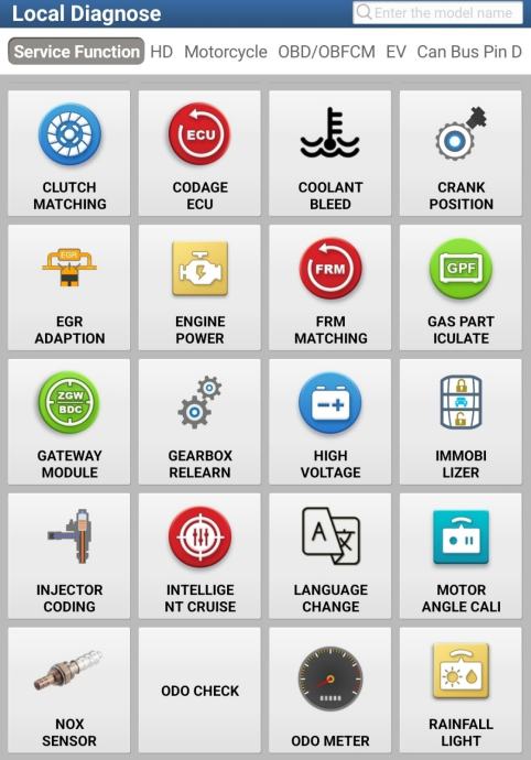 Osim funkcija servisa, čitanje i brisanje grešaka, kodiranja, čitanje podataka u stvarnom vremenu, aktiviranje komponenata, uređaj ima i oko 40 specijalnih funkcija, neke od njih su: