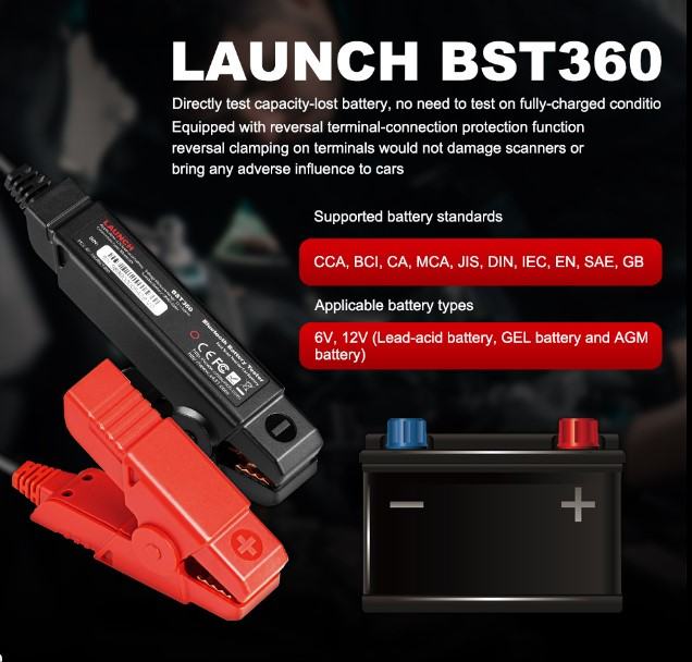 Launch Tester za akumulatore 6v 12v profesionalni,jednostavno korištenje,instalacija u tablet,mobitel,mogućnost spajanja sa Launch dijagnostikom,testira stanje akumulatora,paljenje,kapacitet...