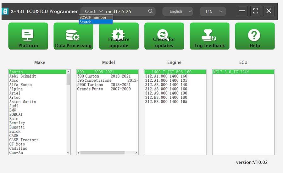 (2) Metoda 2: Utipkajte željeni E-C-U unosom vrijednosti u okvir za pretraživanje. Kategorije pretraživanja uključuju Bosch broj i pretraživanje, Na primjer, pretražite motor MED17.5.25 pomoću pretraživanja.