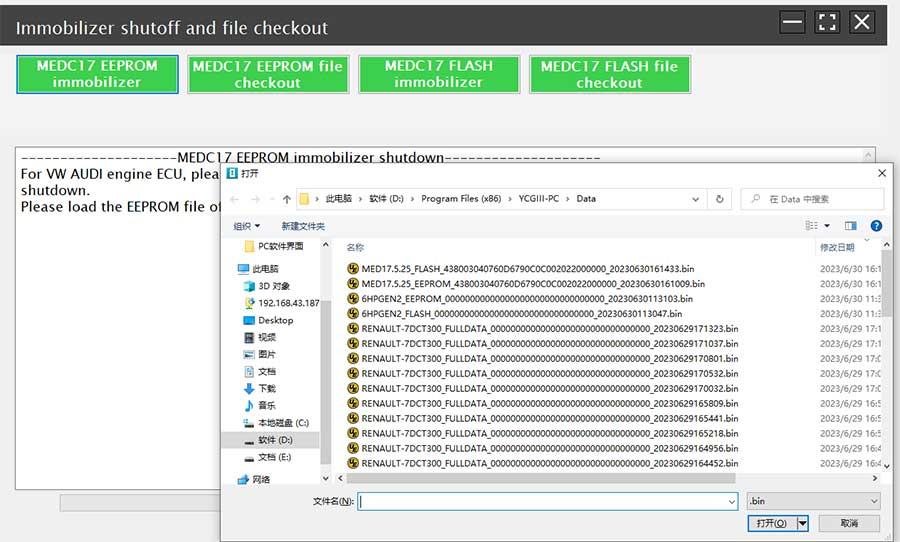 2. Provjera datoteke i isključivanje IMMO-a (proces: odaberite datoteku > povežite mrežu za dobivanje > spremite datoteku)