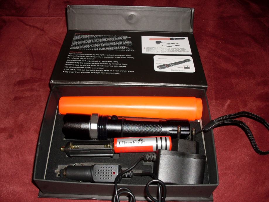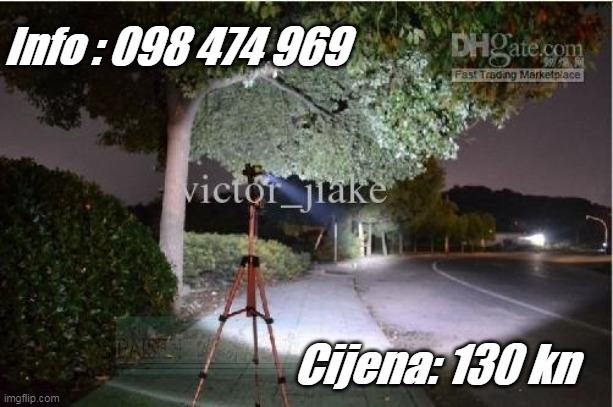 U kompletu dobivate profy LED svjetiljku koja baca svjetlo nekoliko stotina metara. Svjetiljka ima i ZOOM sa 16 razlicitih podesavanja, od najuzeg snopa, do vrlo sirokog. Ima 3 vrste rada, JAKO, SLABIJE i FLASH (trepcuce). U kompletu dobivate PUNJIVU JAKU bateriju zajedno sa punjacem za kuću (220 V) i punjacem za auto. Svjetiljka je stvarno izvrsna. Uz nju dobivate i SOS nastavak, t.j. nastavak za pomoc na cesti