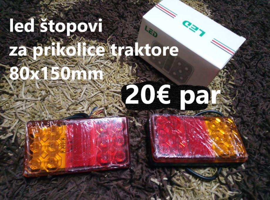 prodajem nove led stopove za traktore autoprikolice i slicno dimenzije 150x80mm novo izvadeno iz kutije samo za slikanje cijena 20€ par fixno