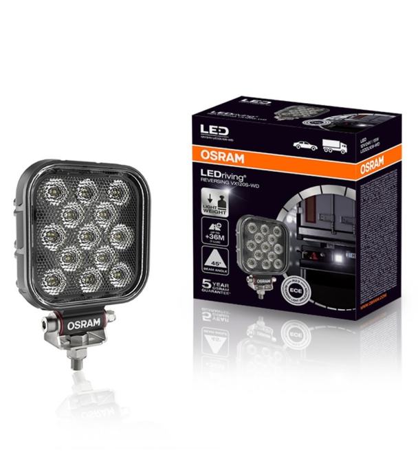 Osram VX120S-WD svjetlo za vožnju unatrag je najkvalitetniji proizvod na tržištu. Nudi vodonepropusnu razinu IP69K, što znači da je otporna na udarce i vodu, te savršeno podržava sredstva za čišćenje vozila, čime sprječava da staklo s vremenom požuti. Dokaz kvalitete Osrama je petogodišnje jamstvo koje Osram nudi kupnjom ovog LED svjetla.