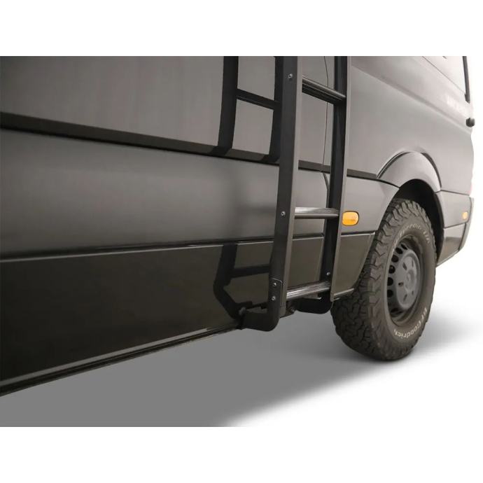 Enostavno dostopajte do strehe vašega Mercedes-Benz Sprinterja (H1) s to močno in vzdržljivo lestevjo. Namenjena je enostavni pritrditvi na stranski del vašega kombija, ta lestev vam omogoča varen in zanesljiv način dostopa do strehe vašega vozila.