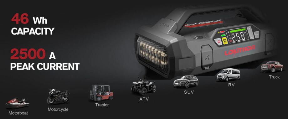 Lokithor JA2500 - 2500A 12V 46Wh litij Jump starter 4S LiFePO₄ Type-C