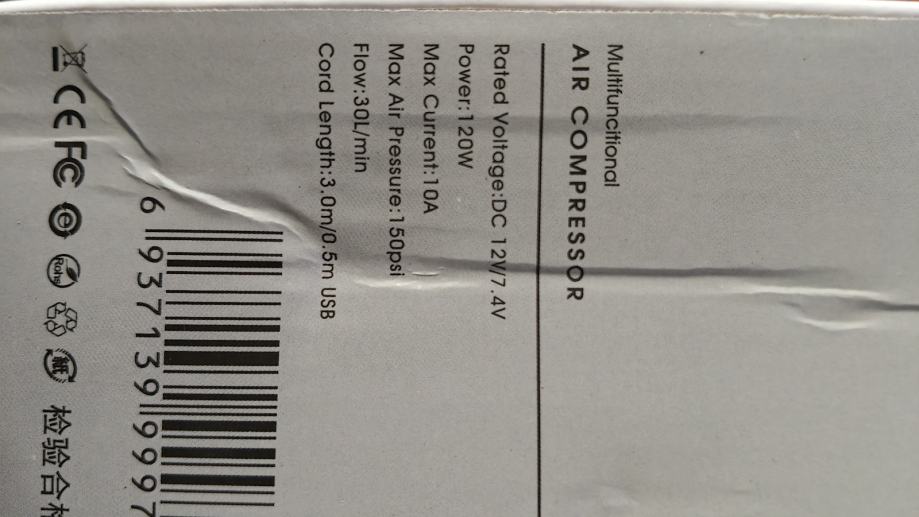 Prijenosni kompresor s punjivom baterijom, nov i nekorišten