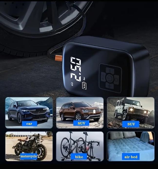 Pogodan za pumpanje guma auta, motora, bicikla, lopti, napuhanaca itd.
