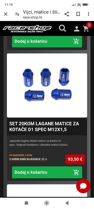 Prodajem vrhunske matice za trkaće i sportske automobile izrađene od legure aluminija 7075 dužine 50 mm.Cijena ovakvih matica je oko 100E