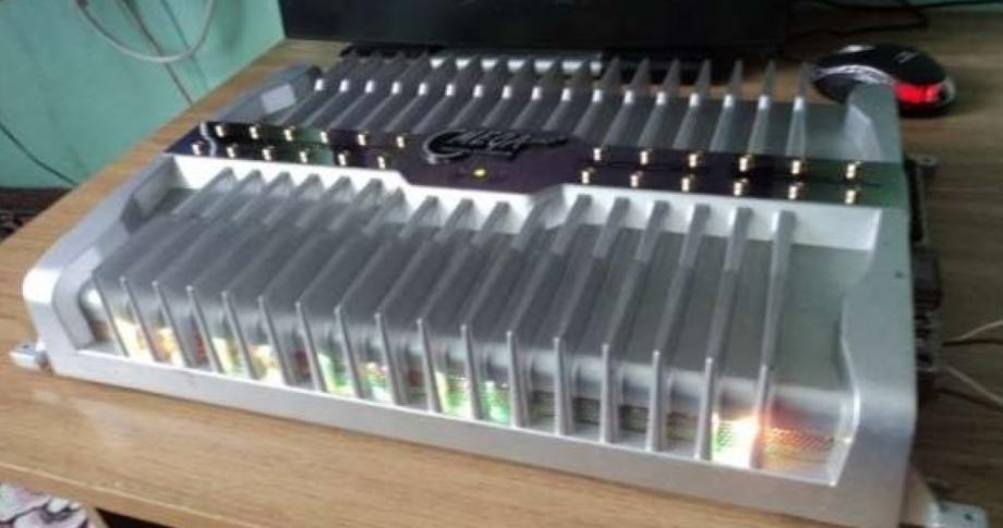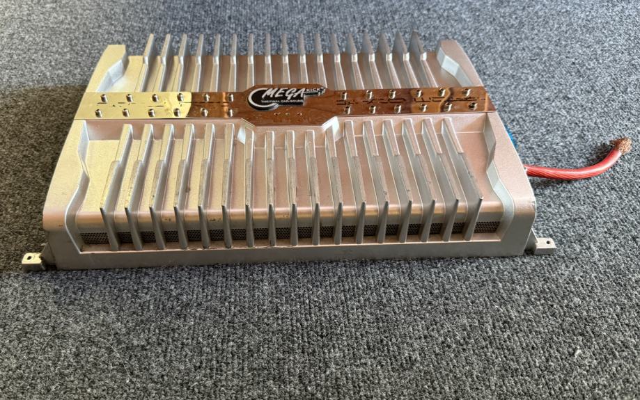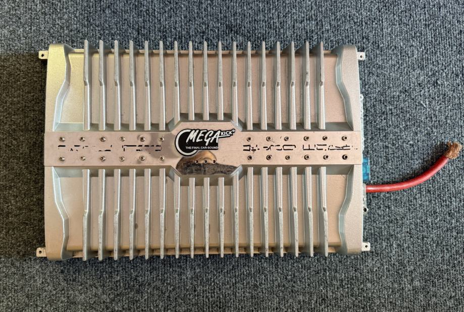 Pojačalo MegaKick 2000W, 4 kanala, izrađeno od aluminija i radi bez problema.