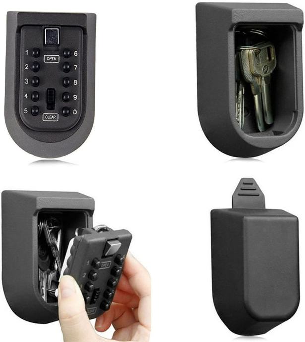 Kutija za ključeve je mali trezor za pohranu ključeva. Otporan je na vremenske uvjete te se lagano postavlja na zid objekta. Unutrašnjim dimenzijama 70x38x25 milimetara može pohraniti tri ili četri ključa. Elektronička zaštita omogućava otvaranje kutije samo osobama kojima Vi dopustite, zahvaljujući desetero znamenkastoj šifri.