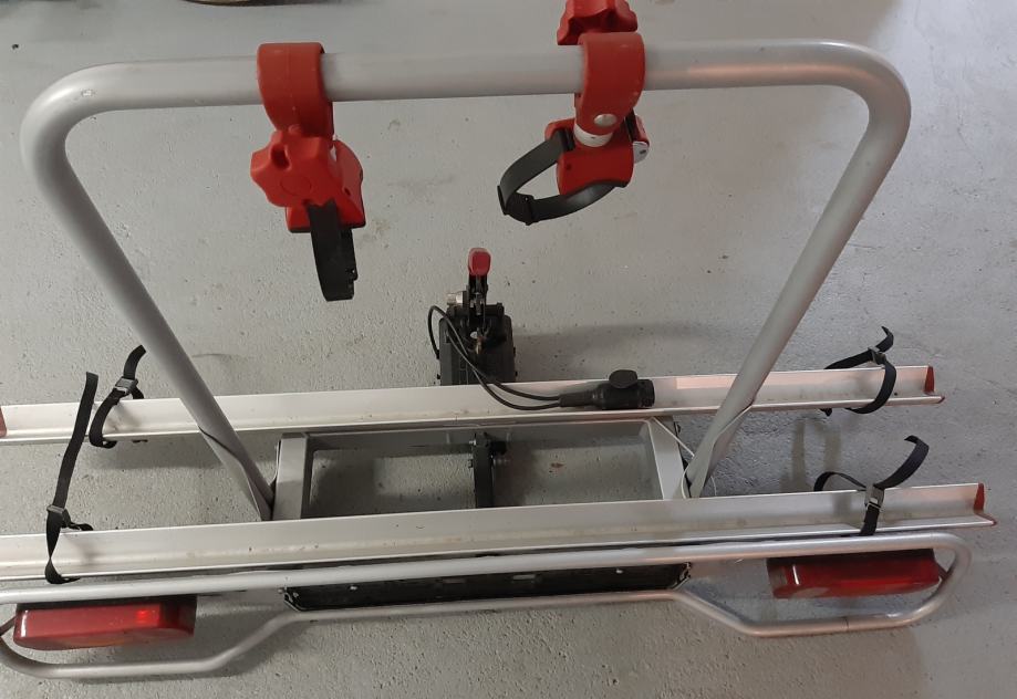 Nosac za bicikle rijetko koristen,sa isprvanom instalacijom,gurtnama za 2 bicikla.mehanizam sa bravicom za zakljucavanje sa 2 kljuca