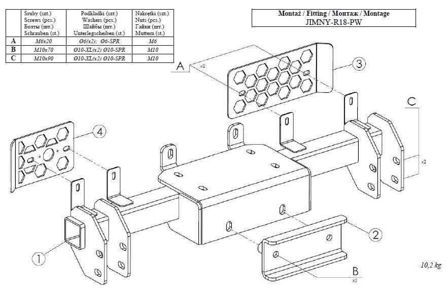 Nosač vitla opremljena je setom vijaka potrebnih za ispravno postavljanje na vozilo.