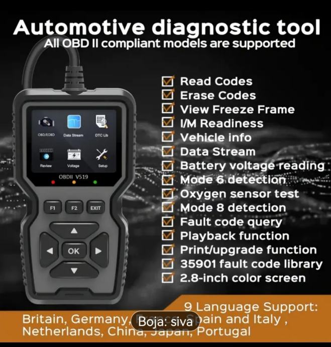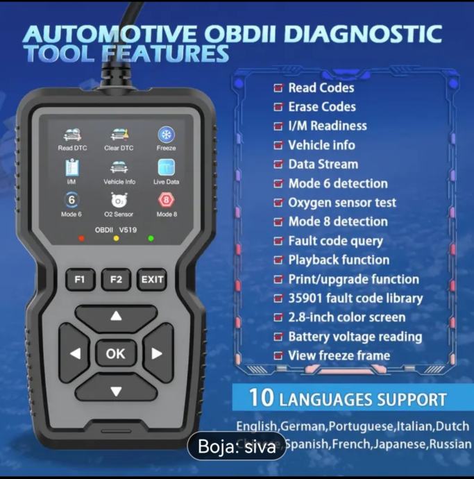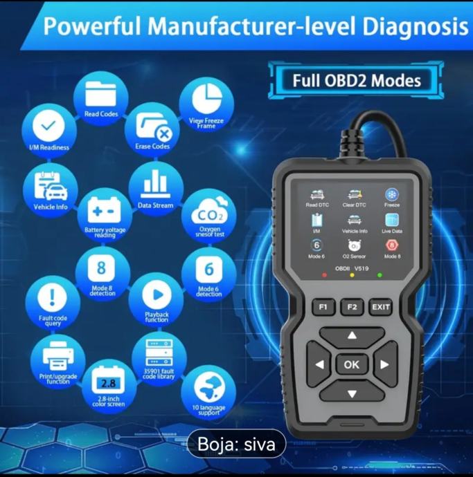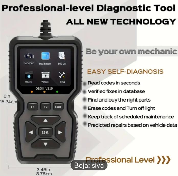 Skener Alat - Napredni čitač dijagnostičkih kodova za motor, svjetla i emisiju, USB napajanje (bez baterije), 35000+ DTC biblioteka, brza obrada, jednostavan sučelje, kompatibilan s većinom vozila, održavanje vozila, ergonomski dizajn, izdržljiva plastična kućišta, Easybutton sučelje