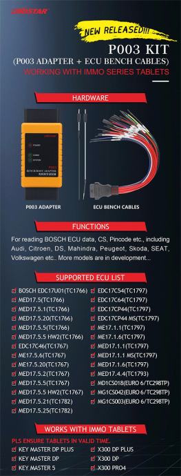 OBDSTAR P003 adapter s ECU kabelima za OBDSTAR X300 DP/ X300 DP PLUS/ DC706/ Key Master DP/ X300 PRO4/ D800
