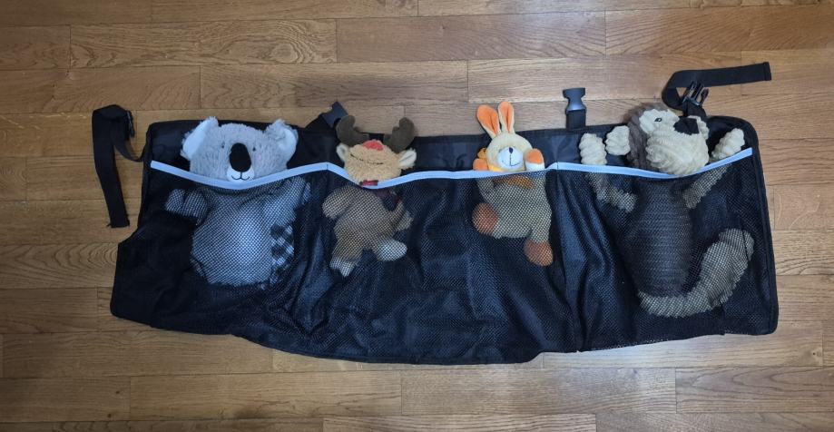 Zakači se za zadnja sjedala pomoću kopči i čička.4 džepa.