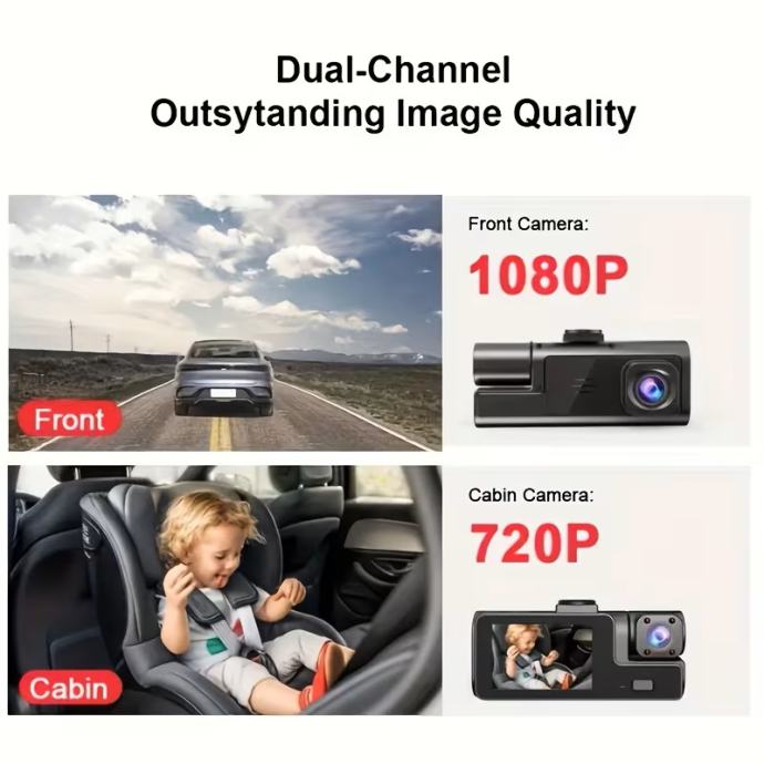 Prodajem dvostruku kameru za auto: Prednja kamera 1080P/720P i unutarnja kamera, 24H parking monitor, G-senzor, loop snimanje, noćni vid, 170° širokokutna, stabilna snimka, napon 12-24V, kompaktni DVR za auto s obavijestima o pokretu, pomoć pri parkiranju, snimanje prednje i unutarnje strane, sustav kamere za automobile...