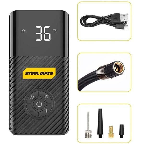 Brz i snažan kompresor, ugrađena litijska baterija od 6000mAh. Ova auto pumpa ima maksimalni tlak od 120 PSI (8,3 bara). Dolazi s 4 adaptera što ga čini savršenim za automobile, kamp prikolice, motocikle, gume za bicikle, zračne madrace, čamce na napuhavanje, lopte i još mnogo toga.